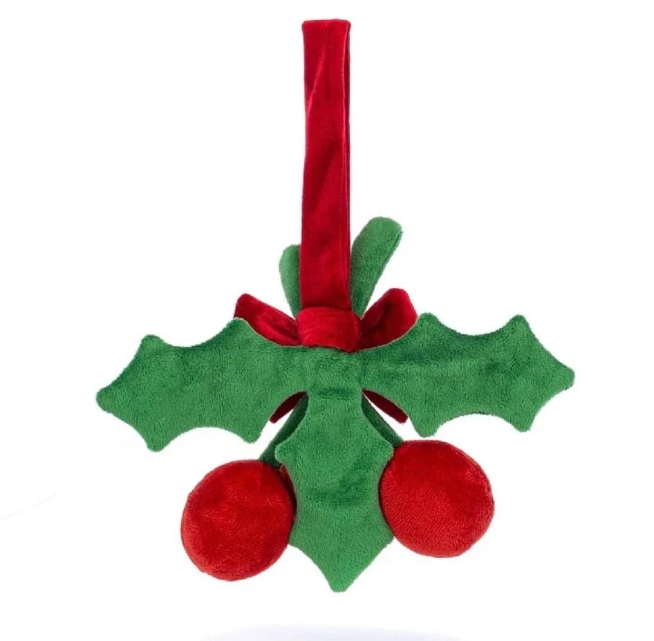 This joyful gang of scarlet berries is gathered together with a cranberry bow and matching velour hanging loop. Rocking soft scalloped leaves with embroidered detailing, Amuseable Holly is far from prickly!