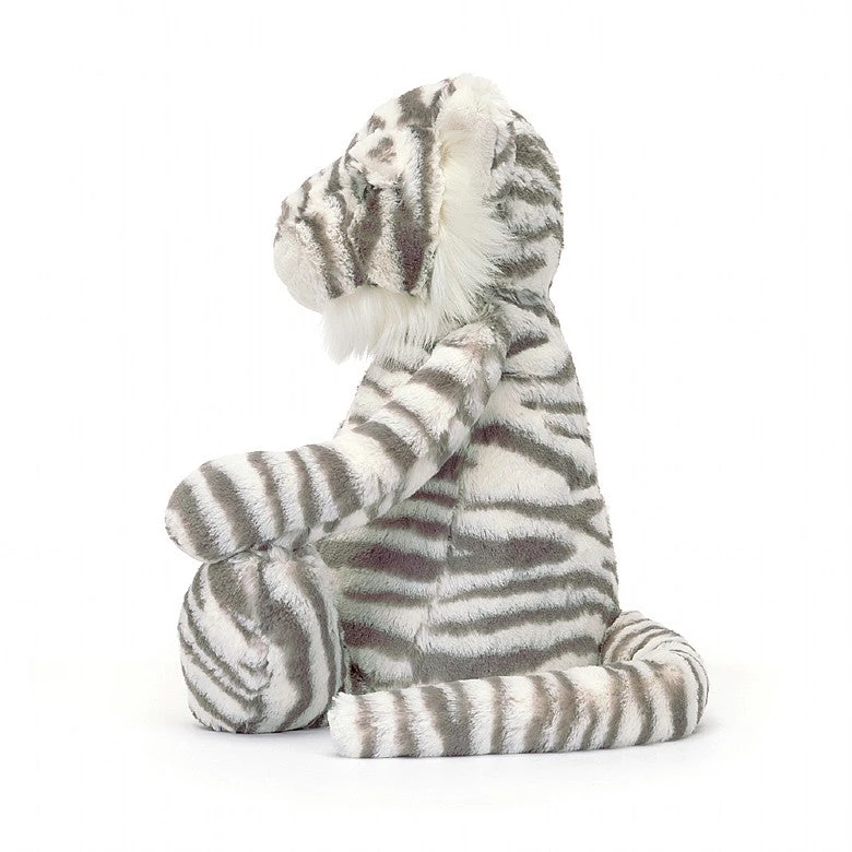 Isn’t Bashful Snow Tiger Medium majestic? Stalking through deep forests in grey and creamy stripes, this fierce-but-friendly wanderer isn’t scared of anything! Nuzzle up to those big squishy paw, a silky, tufty ruff and pebbly nose – who needs a guard dog?