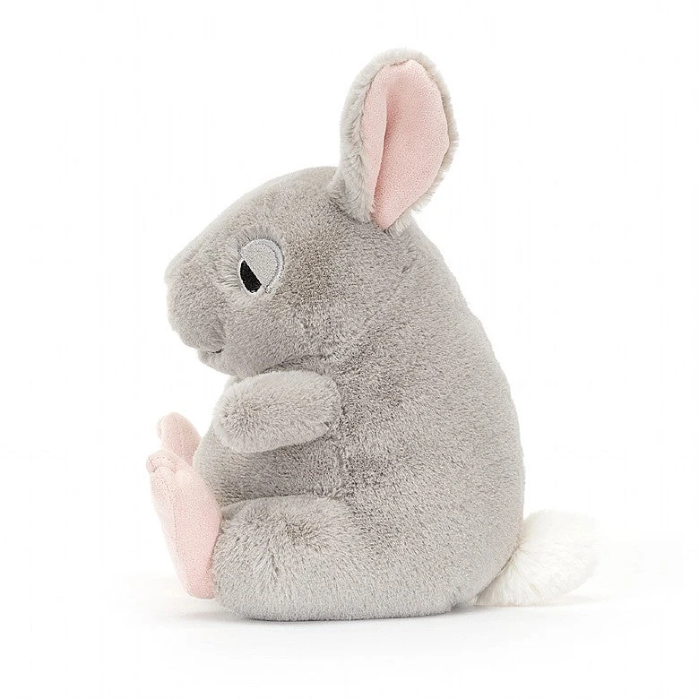 Cuddlebud Bernard Bunny is rumpled, dreamy and just the companion for peaceful dreams. This lazy grey bunny has a flopsy pose, embroidered eyes and suedette lids, with two-tone ears and pink feet with stitch toes.