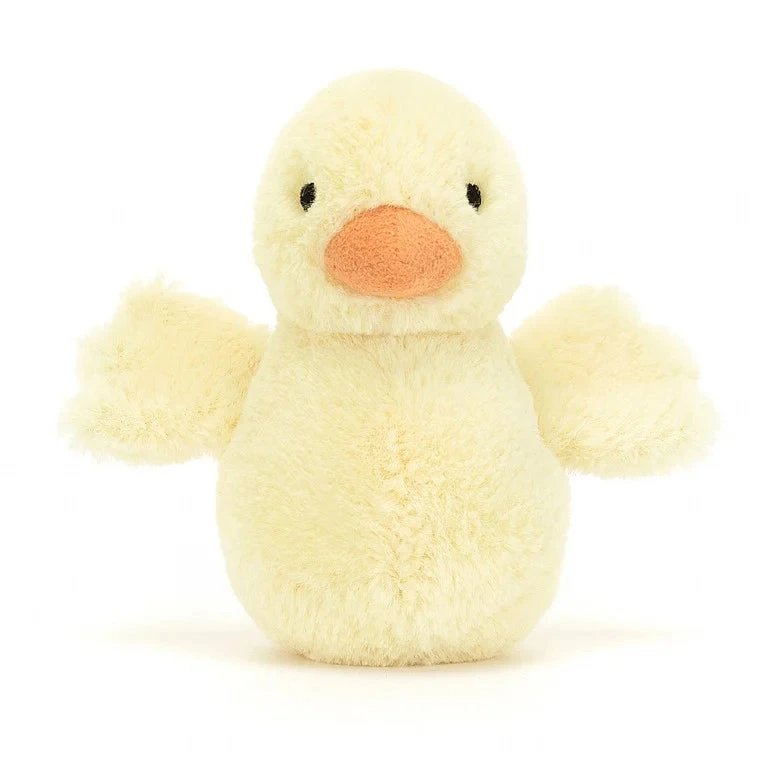 Fluffy Duck is a very happy swimmer, in soft pastel yellow fur. This pastel duckling is plump and smiley with their suedette bill and raised tail, waving those soft little wings.