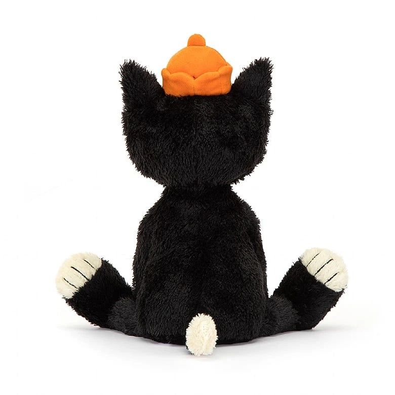 Jellycat Jack BIG is finally here! This tuxedo cat has soft tufty fur, huge stitched paws and a friendly smile. With a long curved tail and L-shaped paws, Jellycat Jack has a soft velour crown of iconic orange jelly!