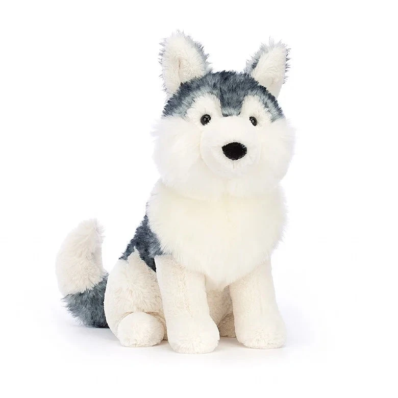 Jackson Husky stays warm in the cold with a silky vanilla ruff. Showing off their blue-grey fur, dandy mask and tufty cheeks and ears, this eager runner is the head of the sled. For now though, Jackson is sitting sweetly on cuddly ice-cream paws.