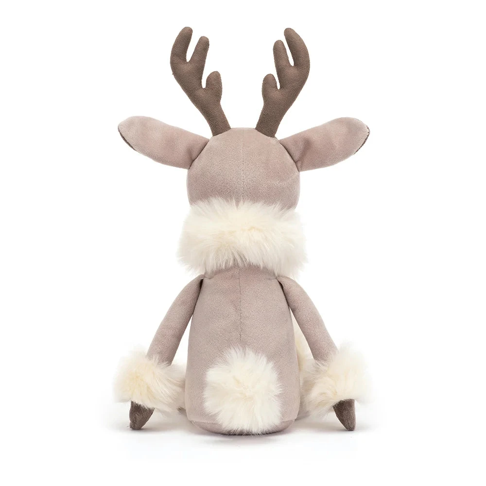 Turn up the glamour with gorgeous Joy Reindeer! This elegant deer has praline-cream fur, suedey mocha antlers and a sweet surprised embroidered face. With dainty cloven hooves, buttermilk cuffs and a matching fluffy stole with chocolate velvet ribbon. Simply deervine, darling!