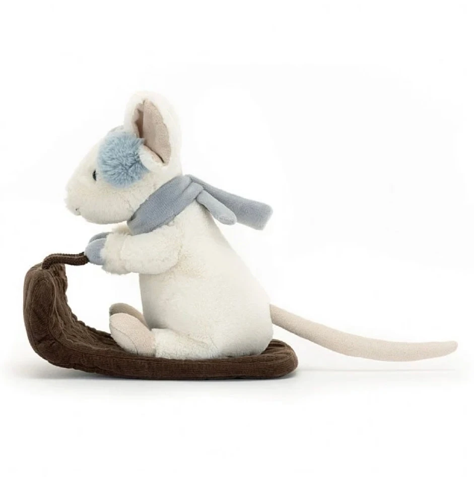 Out of the way – champion coming through! Merry Mouse Sleighing is as fast as a snowball, with blue mitts and earmuffs, a furry scarf, gorgeous ruched ears and a suedette tail. Riding a cord sleigh with stitch details and a braided handle, this is one intrepid mouse!