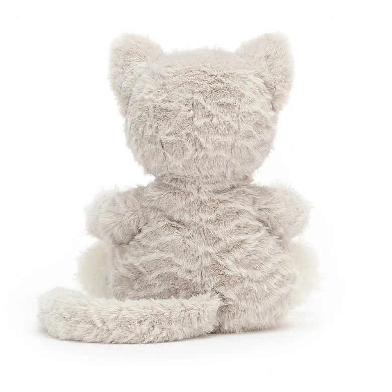 What a podgy little bean! Mitten Kitten Sandy is tickly-textured in dreamy mocha-grey fur. Charmingly chubby, Sandy’s so snuggly, with tufty ears and a swishy tail. This carefree kitty has patch paws and snoot from snaffling scrumptious cream, but it’s hard to stay cross for long!