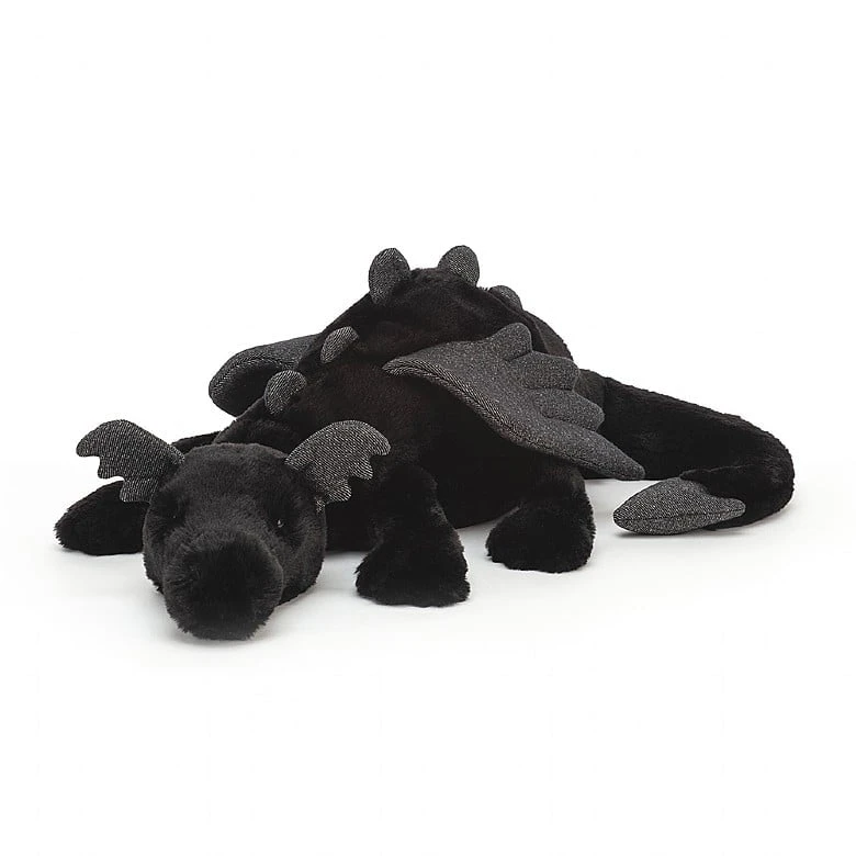 Onyx Dragon is a liquorice lovely with a tubby tum of soft black fur. With sparkly ears, spine, wings and tail dart, this dreamy dragon glitters and shimmers! Onyx is ready for a magical holiday, with fairy tales, songs, moon-moss pie and a cosy fire to curl up beside.
