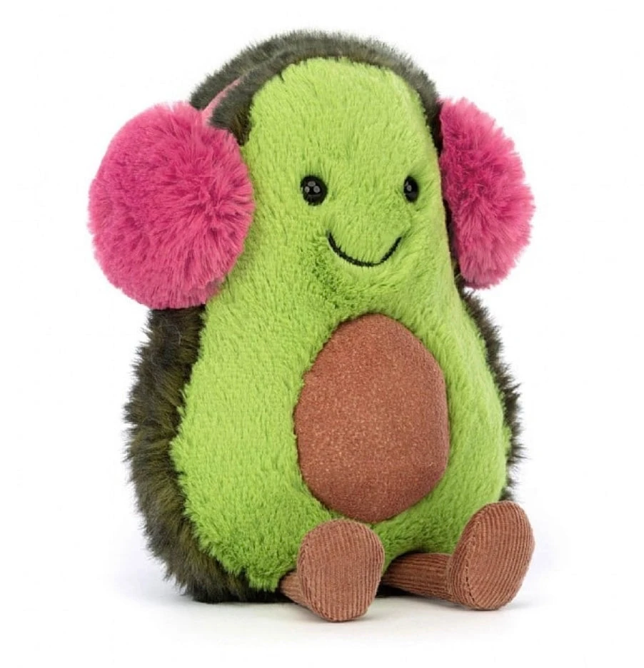 Toastie Amuseable Avocado is taking no chances with chilly weather! This affable fruit wears fluffy pink ear muffs to set off that green tum and mossy two-tone shell! With a brown suedette stone, toffee cord boots and cheery embroidered smile, this avo is absolutely smashing it.