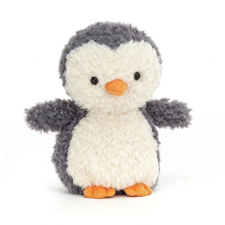 Squat and sassy, Wee Penguin is a little chick with a ton of charm. The roundest, fuzziest poppet on the ice, this penguin has tousled pebble fur, an ice-cream tummy and orange feet and beak. Who could resist a heart-shaped face, bright black eyes and waggly wings?